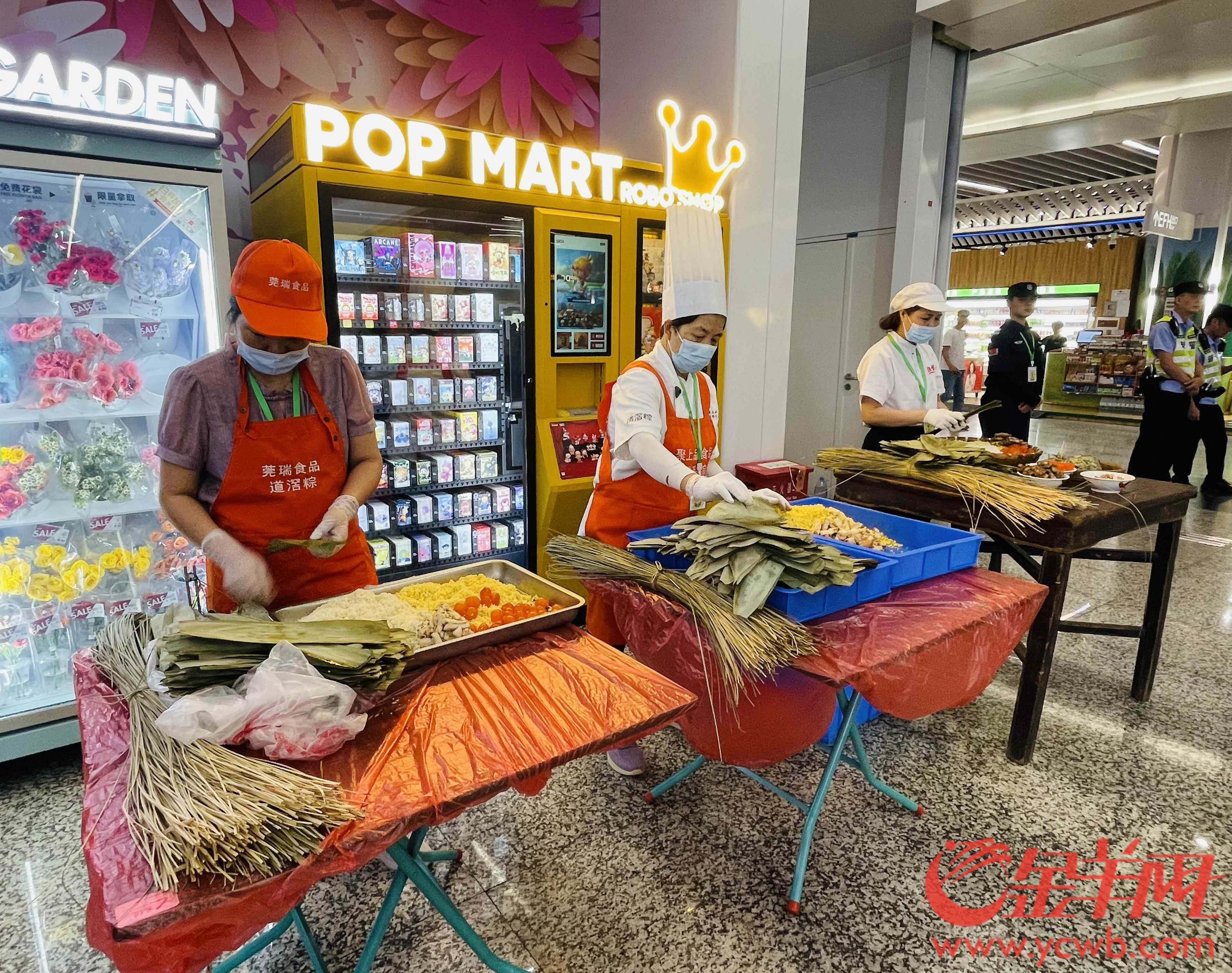 “太快了,一分钟就能包好3条粽子!”5月22日16时,道滘裹蒸粽非遗推广活动在广州地铁番禺广场站东站厅举行。除了广东省级非遗包粽擂台赛,更有各种咸甜皆宜风味的道滘裹蒸粽产品展示和试吃,以及非遗粤曲演唱等环节,来自东莞水乡道滘镇的粽子香满广州地铁站。