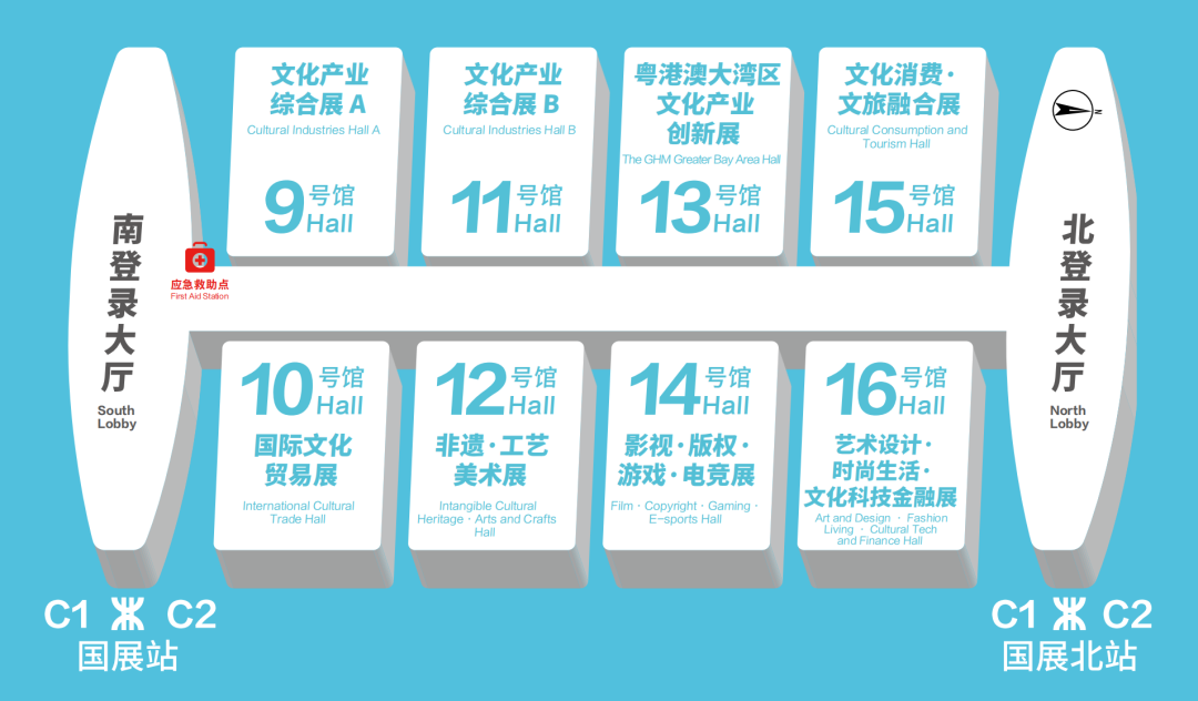 地铁12号线、20号线国展站C1、C2出口可直达展馆南登录大厅。