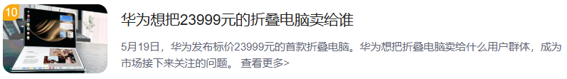 5月21日,话题“华为想把23999元的折叠电脑卖给谁”冲上热搜。