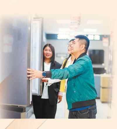 消费者在贵州黔西莲城街道一家商场家电大卖场内选购家电产品。周训超摄