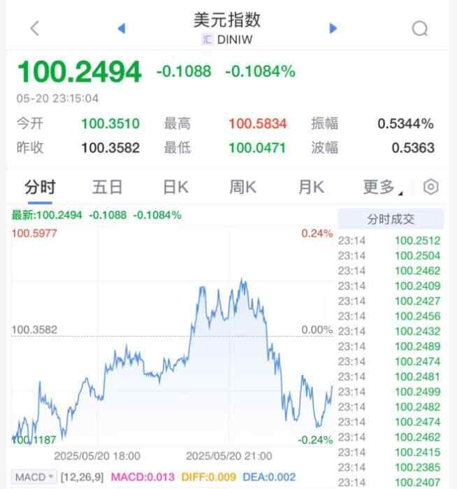 美元在周二再次走软,受到美联储对经济前景保持谨慎态度的拖累。此前,评级机构穆迪在上周下调了美国主权信用评级,导致美元在周一出现大幅抛售。美元走弱使得以其他货币计价的买家购买黄金的成本更低。