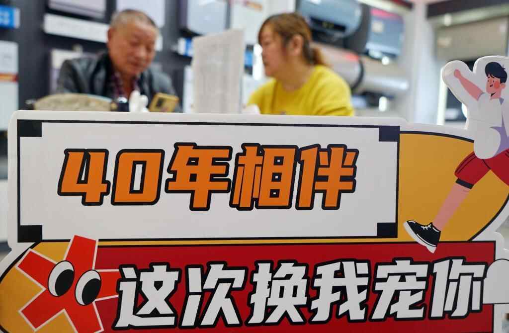 4月15日,在浙江省嘉兴市南湖区南溪路一家大型家电商场,顾客在咨询参与政府补贴活动的热水器。 新华社发(金鹏摄)