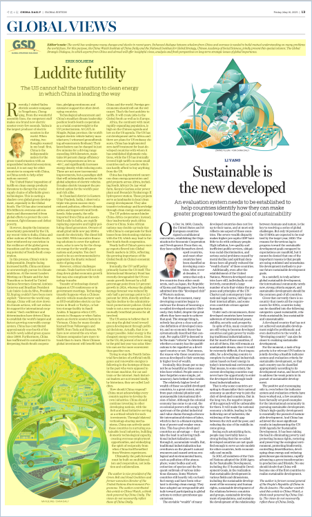 近年来,中国在可再生能源开发、新能源汽车等领域取得显著成就,展现出强大的产业实力和技术领导力,引领着全球绿色转型;同时通过南南合作助力其他发展中国家实施能源转型项目。当前美国政府在对外援助和气候环境政策方面出现倒退,并出台保护主义关税政策冲击全球绿色发展进程。在此情况下,中国应继续践行多边主义,通过技术转移和知识分享深化绿色合作,推进全球可持续发展。