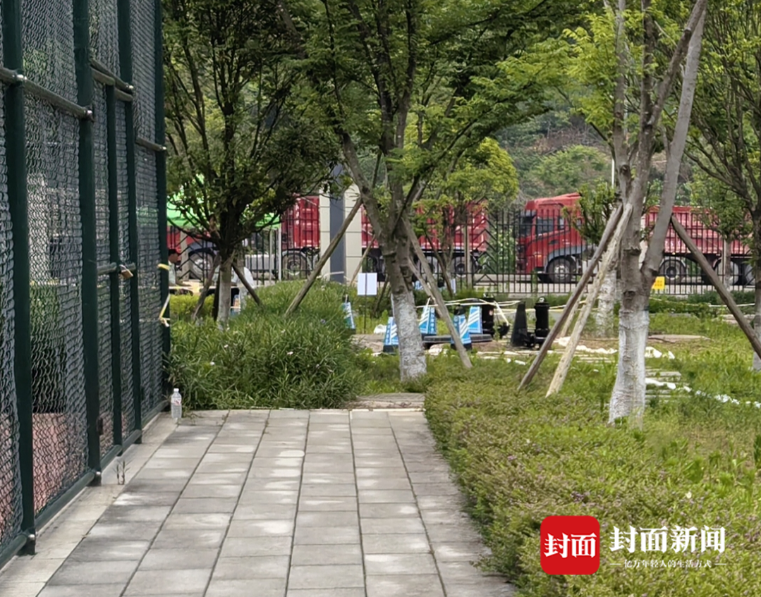 21日中午,记者实地探访了事发现场。根据观察,记者注意到,事发现场在篮球场旁的一块草坪上。这块草坪中间有一条石板小路,出事的窨井口就在石板小路旁。如果盖上仿真草皮,的确不容易被发现。