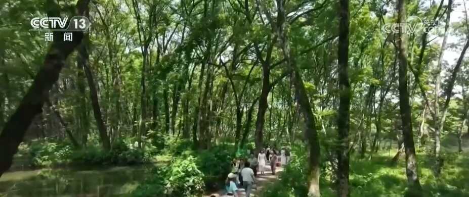 安徽黄山的千年古村西溪南村近期进入一年中最美的青绿时刻。在这里,游客们除了可以漫步古村落,还可以乘坐 小小竹排穿梭枫杨林,或坐上全景天窗观光轨道小火车沉浸式体验人在画中游的生态美景。