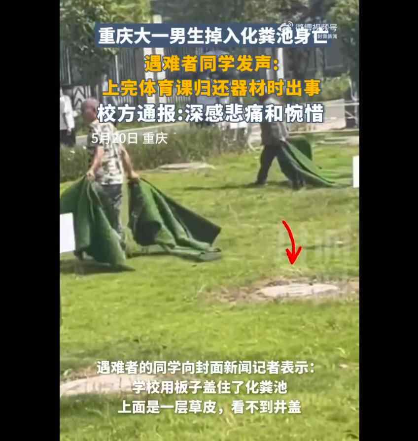 遇难者的同学向@封面新闻 表示,当时刚上完体育课,遇难者和另一名同学一起去归还器材,在学校操场旁的篮球场边不慎掉进化粪池,“学校用板子盖住了, 上面是一层草皮,看不到井盖。”