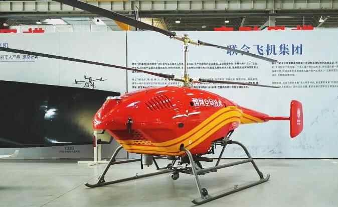 闫怀强:这一架是TD550无人直升机,它载重可以到200公斤。国网很多都需要巡检,比方说高压巡检,以前都是人像走钢丝一样在上面巡查,很危险。现在用这款无人机就可以实现空中巡检。在其他行业,比如说应急消防,一般登高车的喷射距离是八九十米。现在无人机可以带水带水枪直接飞到100米以上,直接就把高层的灭火场景覆盖了。