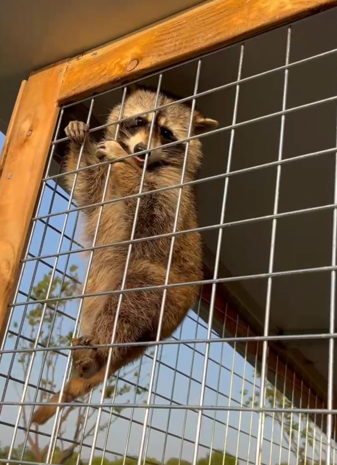 工作人员称原本是在岛上搭了一个笼子饲养小浣熊,后来从老师傅那里才知道小浣熊其实是聪明又很顽皮的动物,会爬树会潜水会游泳,“但我们只知道它会爬树”。小浣熊一直逃跑的原因,他们推测可能是不适应环境,笼子太小,而他们也已经换成了带院子的大房子,就等着小浣熊们回来。
