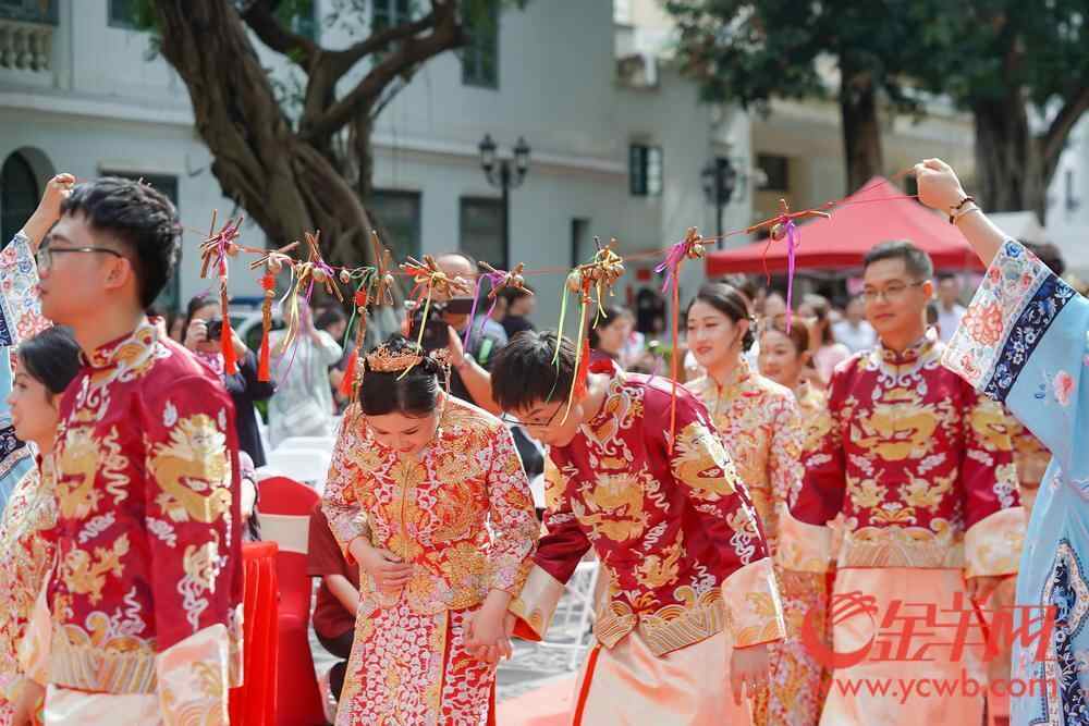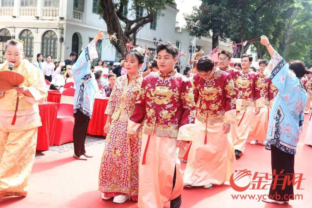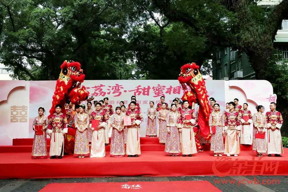 5月20日,“缘定荔湾·甜蜜相伴”520集体婚礼暨“甜蜜路线”发布会活动在广州荔湾举行,其中广府集体婚礼吸引来自大江南北的20对新人参与。