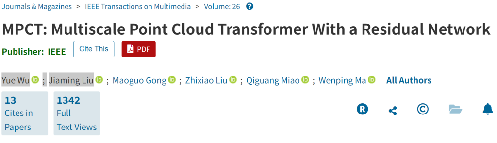 相关论文题为《MPCT: Multiscale Point Cloud Transformer With a Residual Network》,于2024年发表在期刊IEEE Transactions on Multimedia上。据记者5月19日晚间下载的版本,该文第6页确出现了“……small number for numerical stability. liujiamingshidaXX Then, we use farthest point……”的非正常表述。