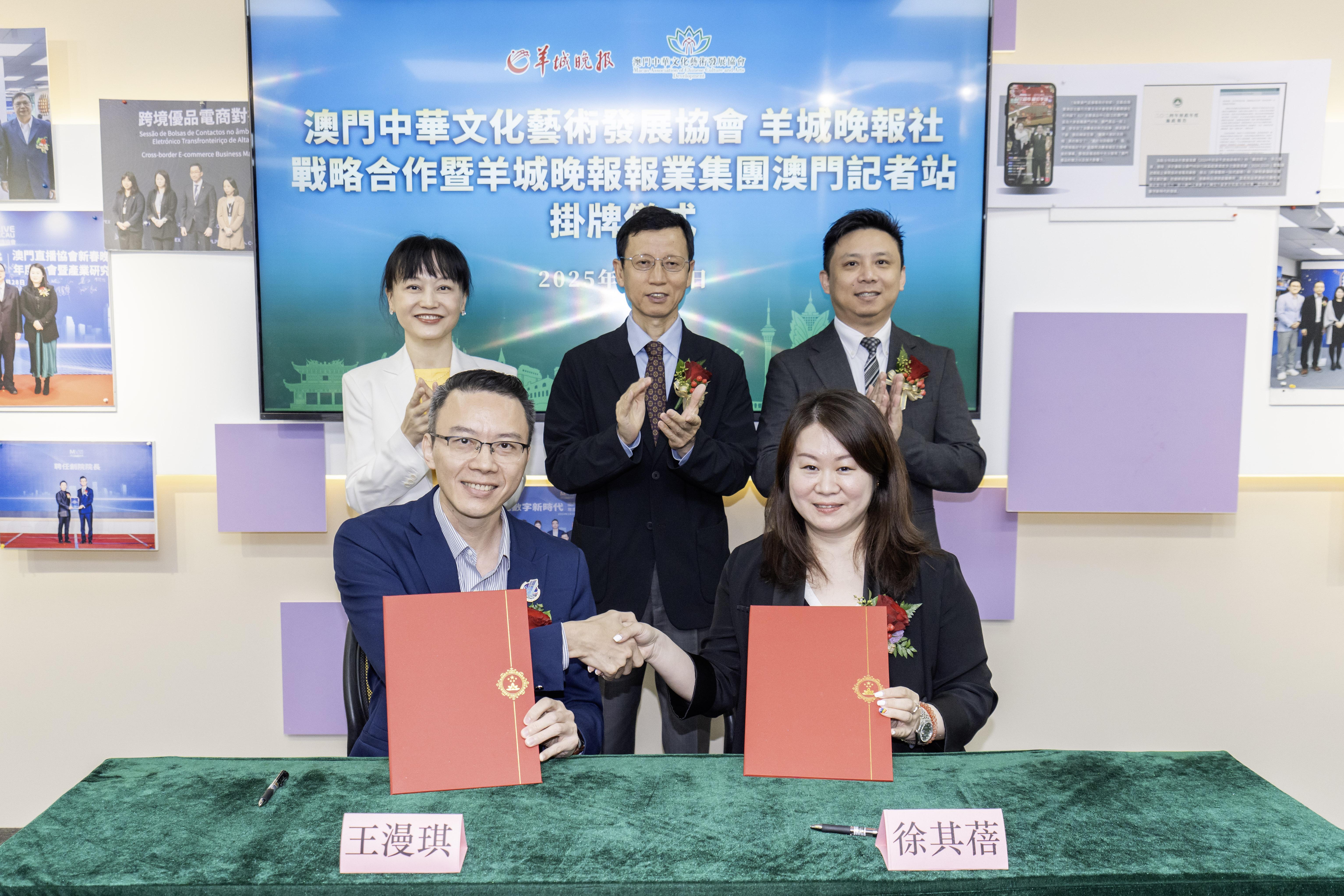 5月20日,羊城晚报报业集团(羊城晚报社)与澳门中华文化艺术发展协会战略合作暨羊城晚报澳门记者站挂牌仪式于澳门隆重举行,双方将携手整合粤澳媒体和文化资源,助力粤港澳大湾区文化产业高质量发展。