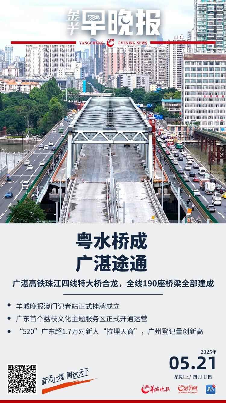 【金羊早晚报】广湛高铁珠江四线特大桥完成合龙,全线190座桥梁全部建成