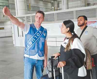 外国志愿者在深圳湾口岸引导过境游客。蛇口境外人员管理服务中心供图