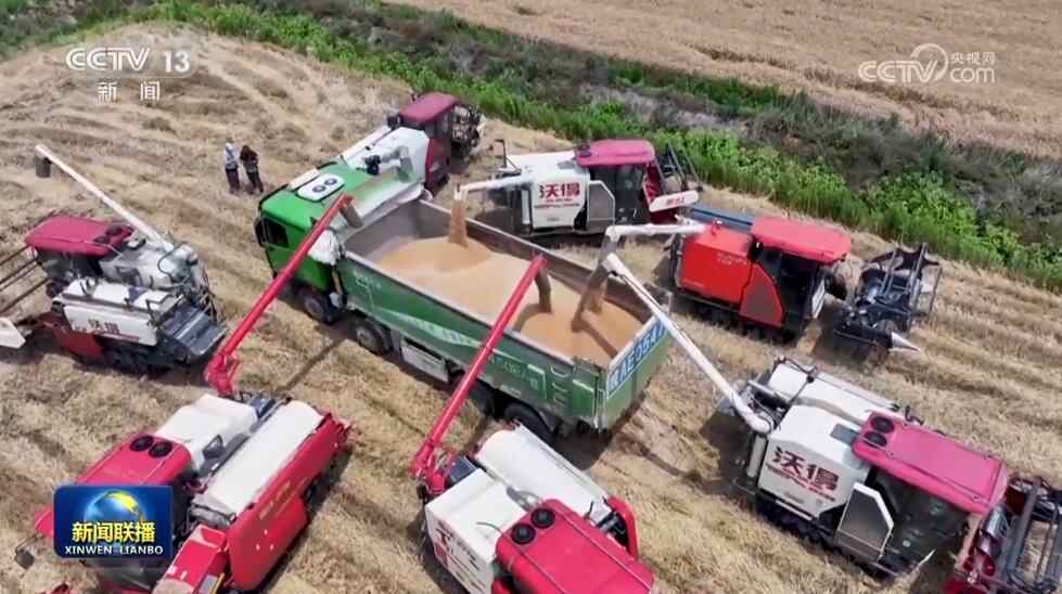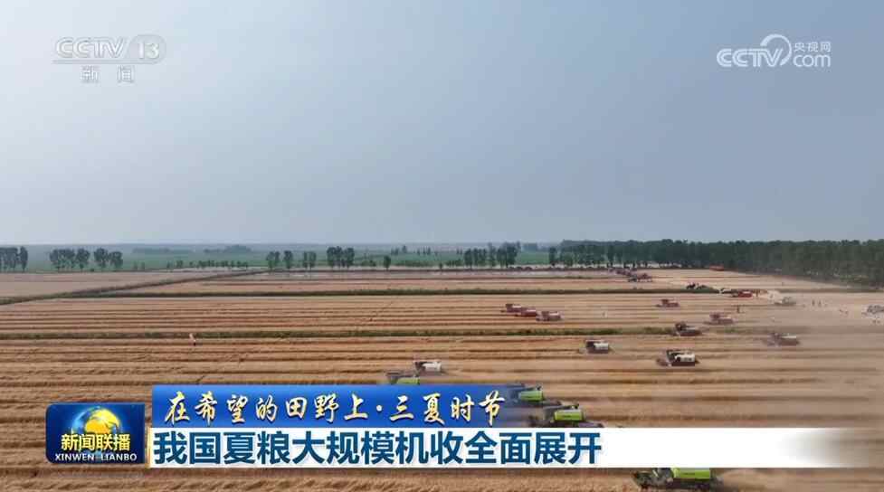 央视网消息(新闻联播):眼下,我国夏粮主要作物冬小麦正由南向北逐渐成熟,日机收面积连续3天超过400万亩,标志着夏粮大规模机收全面展开。