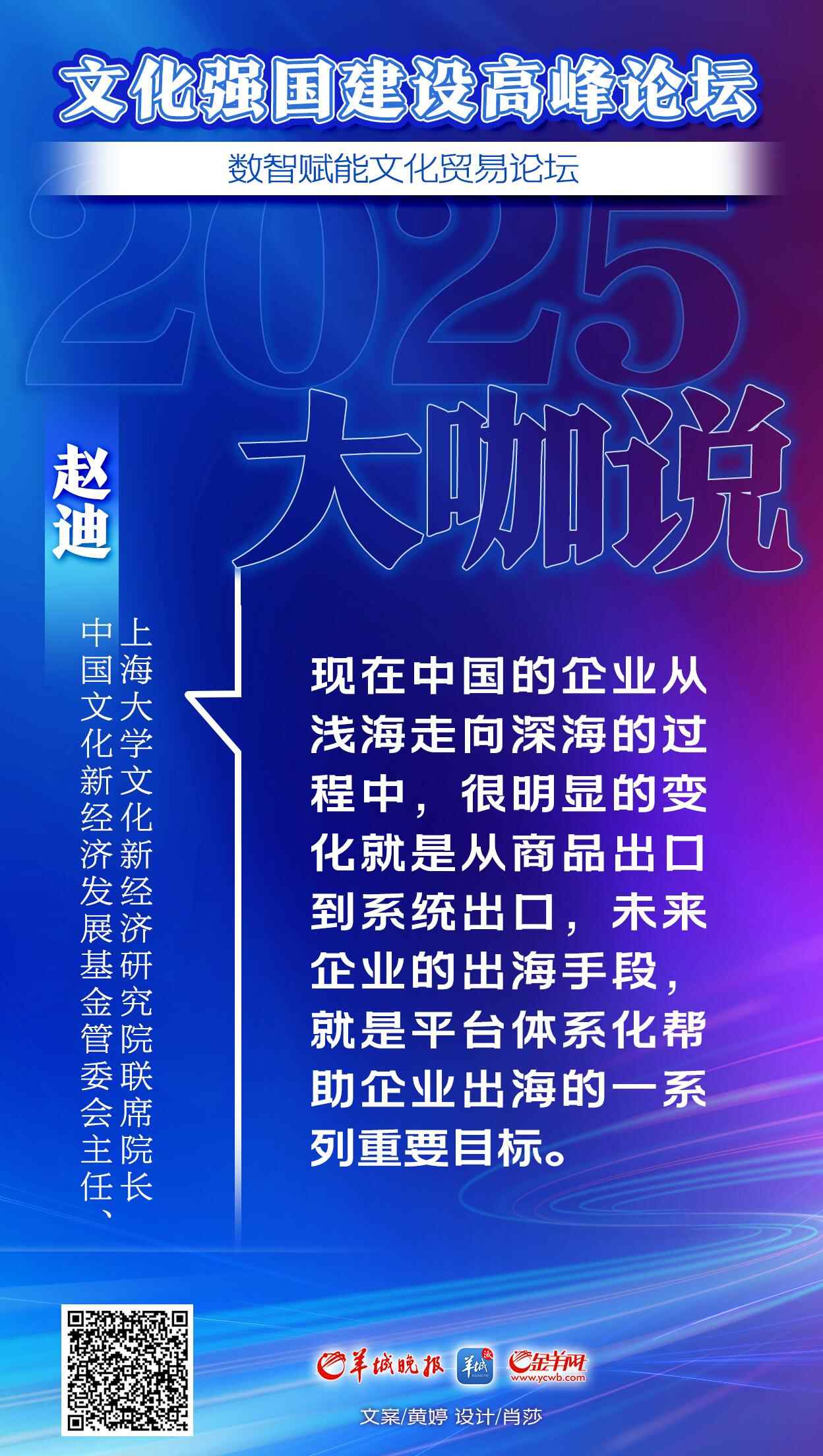 5月27日,在2025文化强国建设高峰论坛数智赋能文化贸易论坛上,中国文化新经济发展基金管委会主任、上海大学文化新经济研究院联席院长赵迪发表了题为《文化数智赋能全球通达 体系化支持企业出海》的专题发言。