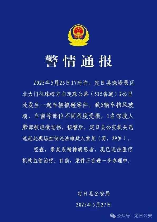 珠峰景区多车被砸,一名驾驶员脸部被划伤!警方通报:肇事者系精神病患者