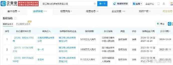 风险信息显示,该公司已被限制高消费,并存在多条股权冻结信息。
