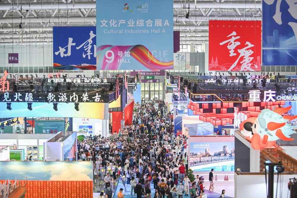 5月24日,观众离开文博会展馆。新华社记者 肖恩楠 摄