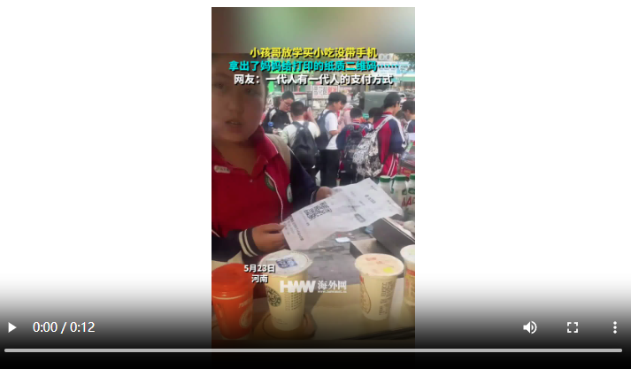 小孩哥放学买小吃没带手机,拿出了妈妈给打印的纸质二维码…… 网友:一代人有一代人的支付方式。