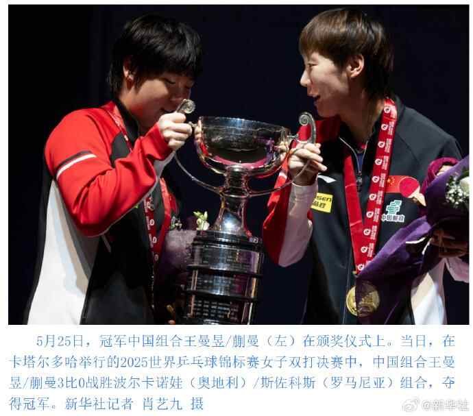 此外,多哈世乒赛女双冠军王曼昱/蒯曼升至世界第一,林诗栋/蒯曼、王楚钦/孙颖莎位居混双前两位,男双世界第一为法国的勒布伦兄弟。