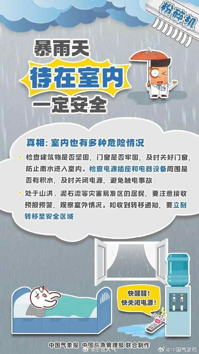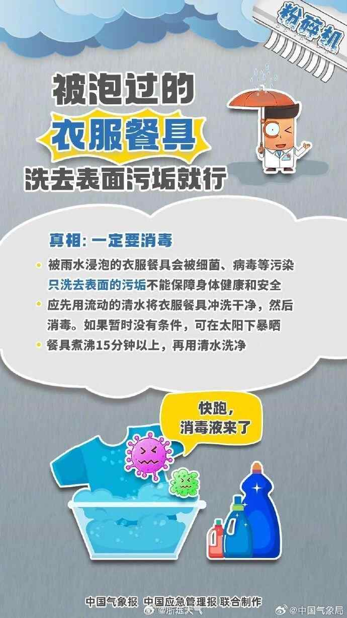 暴雨天,待在室内一定安全,被泡衣物餐具仅洗表面污垢就行,暴雨停了就是没事了……关于暴雨的这些错误认知,收藏好以下图片,“粉碎”不靠谱的说法↓