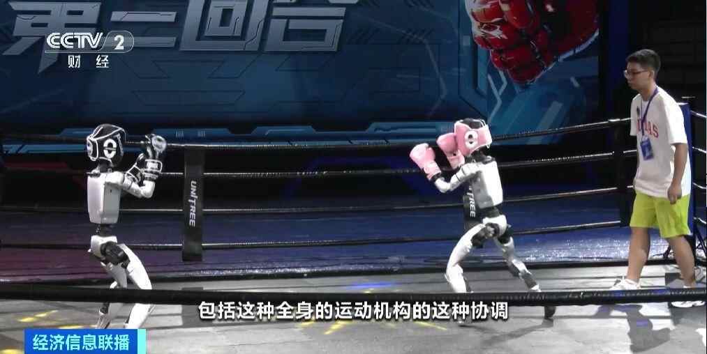中国信息通信研究院泰尔系统实验室副总工程师 刘泰:采用传统的控制方法很难让它站得住走得稳,现在通过强化学习的训练方式,让它往能够站得平衡的方式由自己去探索。整体的比赛非常振奋,它的表现可以说比以往更进了一步,能够看到机器人在对抗比较强的情况下,也能够保持很好的稳定性,包括全身的运动机构协调,是科技进步和产业进步很好的结合。