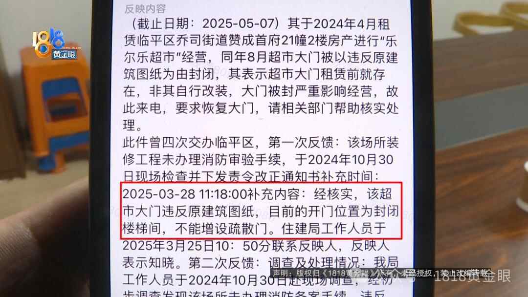 杭州临平区住房和城乡建设局 工作人员:我们是收到群众举报,同时有消防部门抄送过来的信息,说建设工程未经消防备案。我们就到现场去,发现确实没有办过消防备案手续,所以我们就发了一张单子给他。前一家店铺也没办出来,因为我们没有监管职能,线索一般都是通过相关部门抄送,或者群众举报,有可能会发现。监察这么多店铺,我们不可能每个都发现。