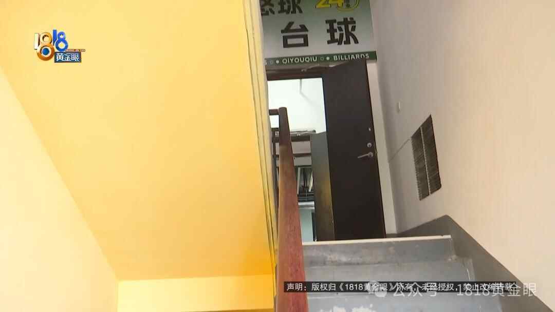 从沿街的这一处楼梯往上,三楼是一个台球厅,大门敞开着工作人员表示,他们这里的门可以打开。