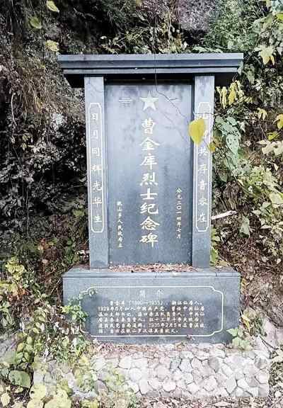 在横溪镇一个公园里,记者看到当地革命历史的介绍,其中便有关于曹金库烈士的内容:1930年9月8日,中共仙居县委员会在横溪地区的溪口村(现曹溪村)成立,当时曹金库是负责人之一,而曹金库的家就是县委机关办公地点。
