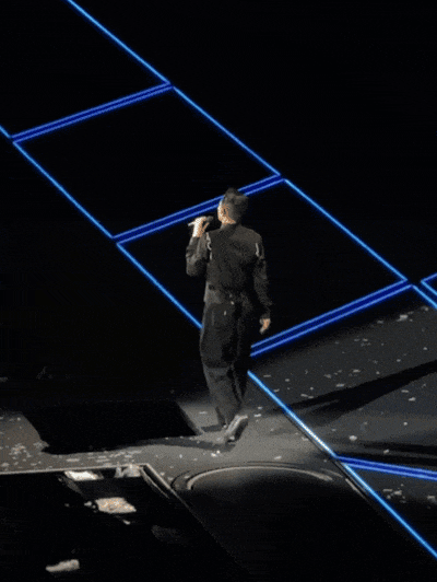 而在北京站时,他又在升降台上差点踩空。现场画面显示,刘德华站在一个面积不大的圆形升降台上,边走边唱时大概忘记了自己正站在台面上,险些一脚踩空。幸好他及时退回,用手抓紧了扶手,避免了事故发生。