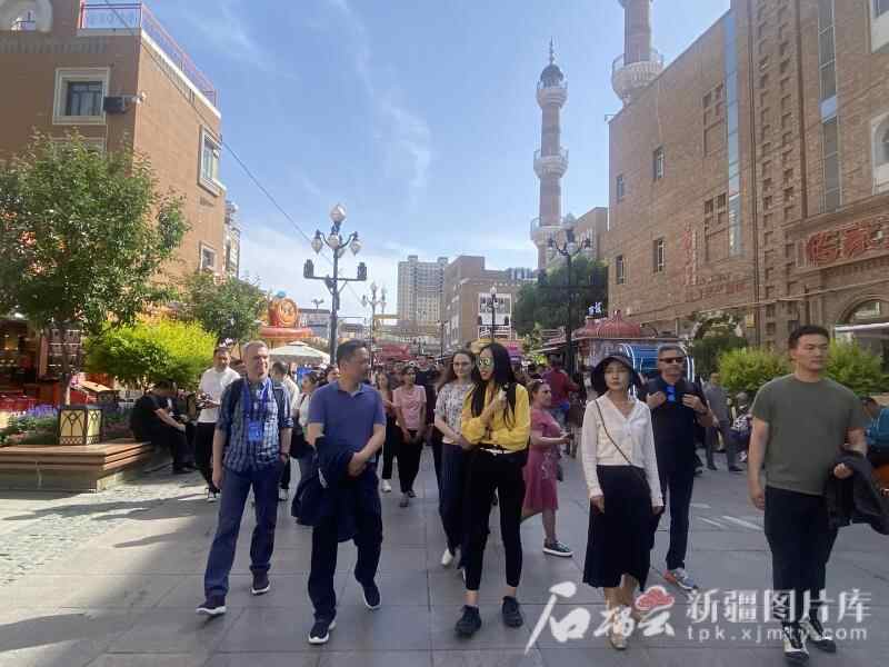 5月25日,中外嘉宾漫步在新疆国际大巴扎。王新摄