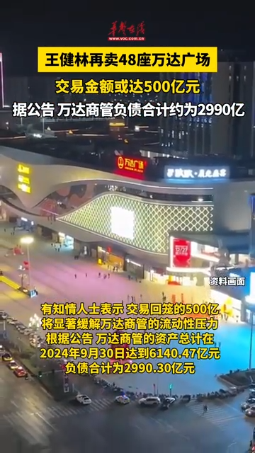 近日,王健林再卖48座万达广场 ,有市场消息称,此次交易金额将达到500亿元。根据国家市场监管总局5月21日发布的最新信息,该笔交易已被无条件批准。