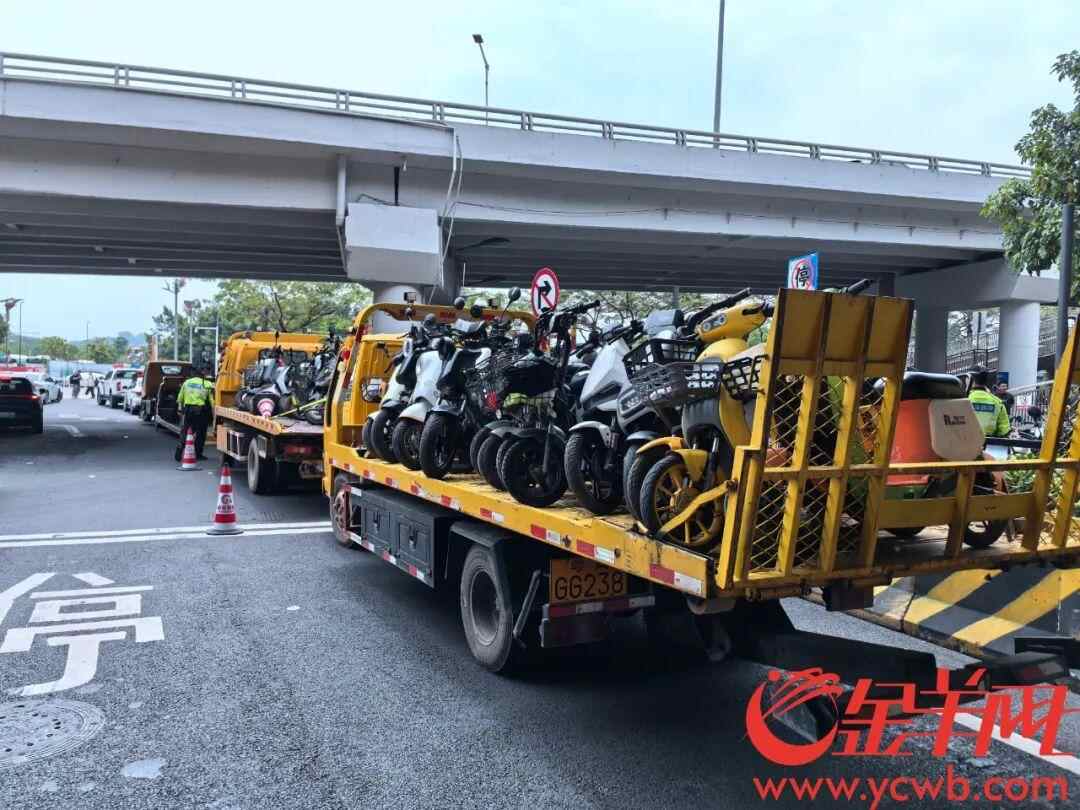 针对地铁口周边的“电鸡”乱象,广州开始严查了!从今日(5月26日)起,广州交警、交通、城管等多部门及属地政府在全市重点地铁站口周边开展交通环境联合整治行动,对违停且妨碍通行的车辆予以拖移,对摩电非法营运围堵拉客行为予以打击,对无牌、遮挡号牌、非法改装的电动自行车予以查处,进一步改善地铁口周边交通环境及通行秩序。首日整治效果如何?记者来到黄村地铁站B口,直击执法现场。