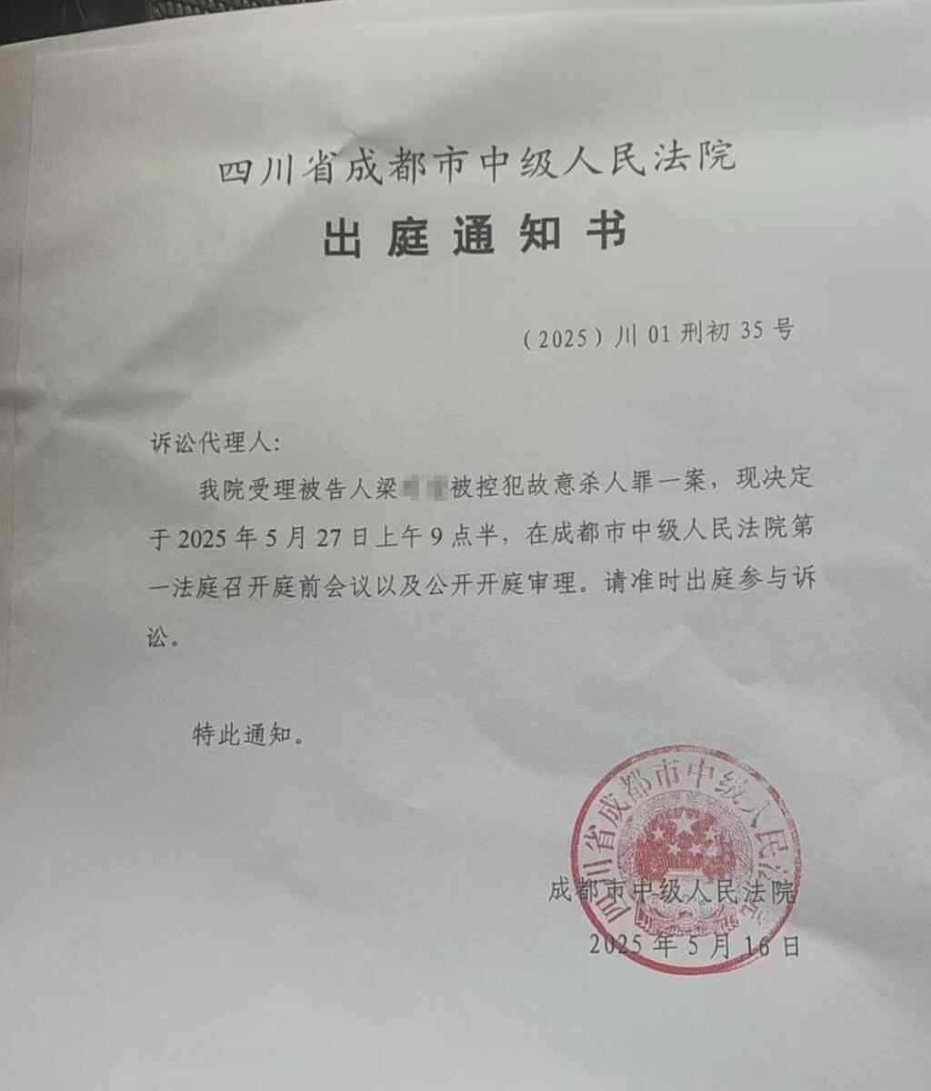 成都27岁女子在家门口被人持刀伤害致死案,将于5月27日在成都市中级人民法院开庭审理。