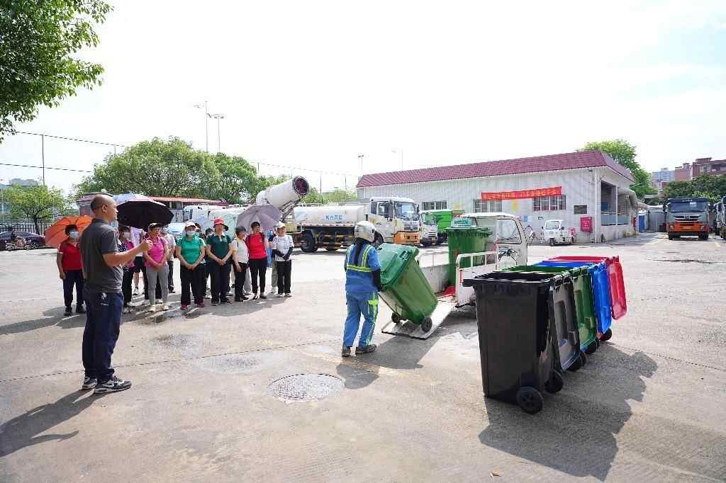 活动伊始,讲解员以图文科普的方式在现场给大家开展了一堂生动的“垃圾分类”无害化处理的普及课。随后,在工作人员的带领下,代表们来到七星资源集运中心工作平台,现场观摩操作流程。满载垃圾的垃圾收运车开至装卸平台区域后,工作人员将垃圾桶移至垃圾处理区域前,按下制动操作按钮,垃圾便自动倒卸至处理池中进行压缩处理。该站点工作人员介绍,“垃圾收运车在这里仅需约十分钟即可完成垃圾倾倒、压缩、消毒、除臭等全过程。相比传统的垃圾压缩站,七星资源集运中心的压缩处理工艺、废气处理技术、除臭设备、配套设施、建筑外观造型等都有明显的提升优化,这些设置不仅改善了工作环境,还美化了周边生活区域,大幅减少对周边居民的影响。”