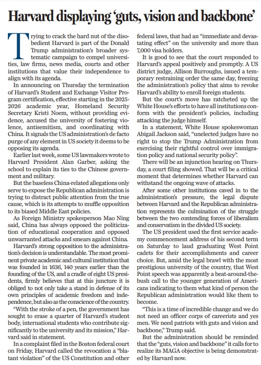 在其他一些机构屈服于美国政府压力之后,哈佛大学与美国政府之间的斗法表明,美国社会日益撕裂,矛盾重重,斗争激烈。