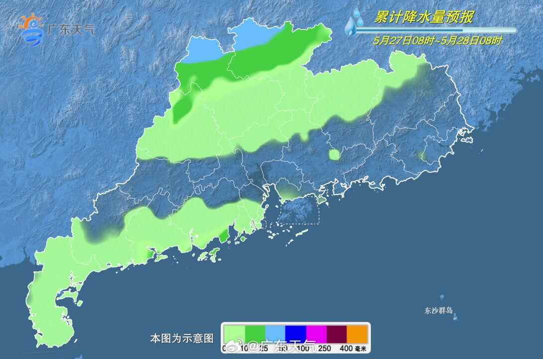 预计,今天(27日),广东各地多云为主,部分市县有阵雨;明后两天(28日-29日)广东有一次大雨到暴雨局部大暴雨过程,主雨带自北向南移动,先后影响粤北、珠江三角洲、粤东市县。