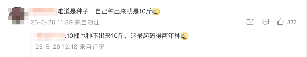 还有网友在评论区戏称,难道是种子,自己种出来就是10斤。
