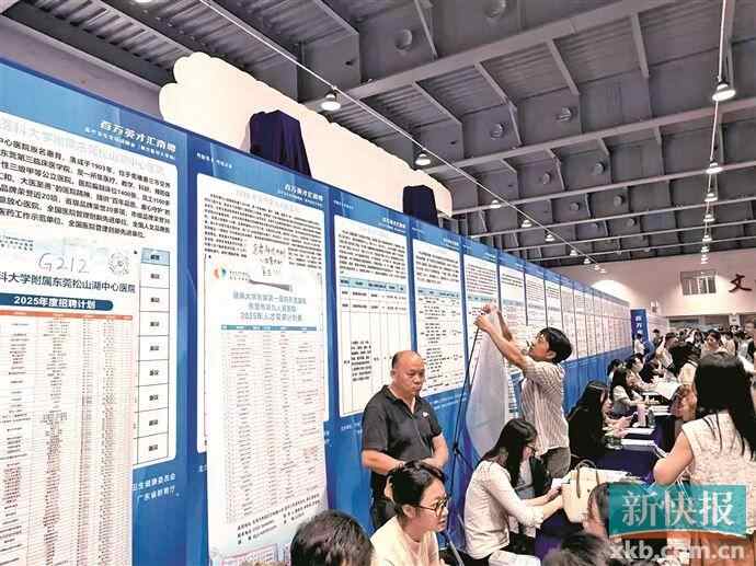 5月24日,由广东省委人才办、省卫生健康委、省中医药局、省人力资源社会保障厅、省教育厅联合主办的“百万英才汇南粤”医疗卫生专场招聘会(省内专场),以“1+1”双主场创新模式在南方医科大学、广州中医药大学同步举行,提供岗位6500余个。两场活动吸引省内及周边省份6000多名医学毕业生、社会人才参与。新快报记者走访发现,基层单位求贤若渴,纷纷提供优厚条件招聘人才,其中韶关市粤北人民医院更是开出100万元年薪引才。