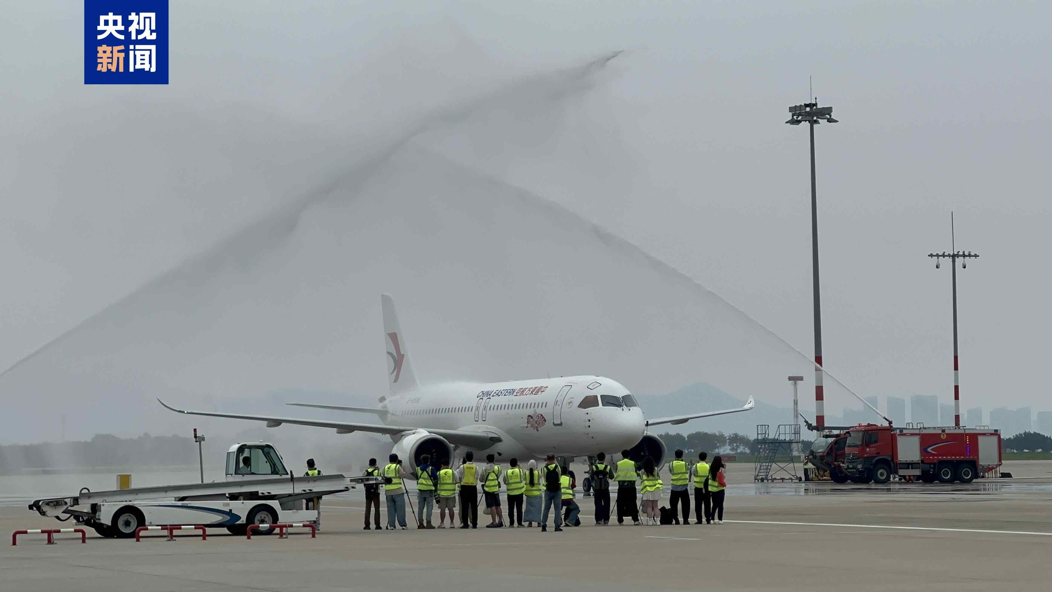 总台记者了解到,5月25日9时19分,由C919国产大飞机执飞的MU5247上海虹桥—厦门高崎航班,搭载着148名旅客抵达厦门高崎国际机场,缓缓穿过象征民航最高礼仪的水门仪式,完成C919国产大飞机的厦门首航。