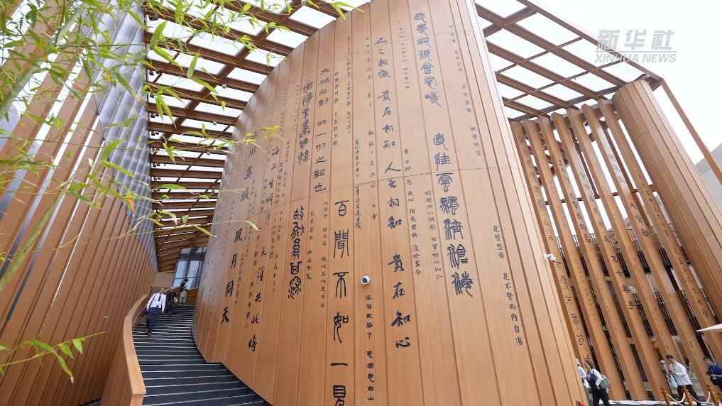 世博会中国馆以“共同构建人与自然生命共同体——绿色发展的未来社会”为主题,中国馆的“书简”造型墙体,选用了新型的低碳固碳竹质材料,馆内互动屏等数字设备展示着中国持续改善的生态环境、丰富的野生动植物资源等,都向参观者呈现绿水青山、崇尚自然的美丽中国,展望人与自然和谐共生的未来社会。
