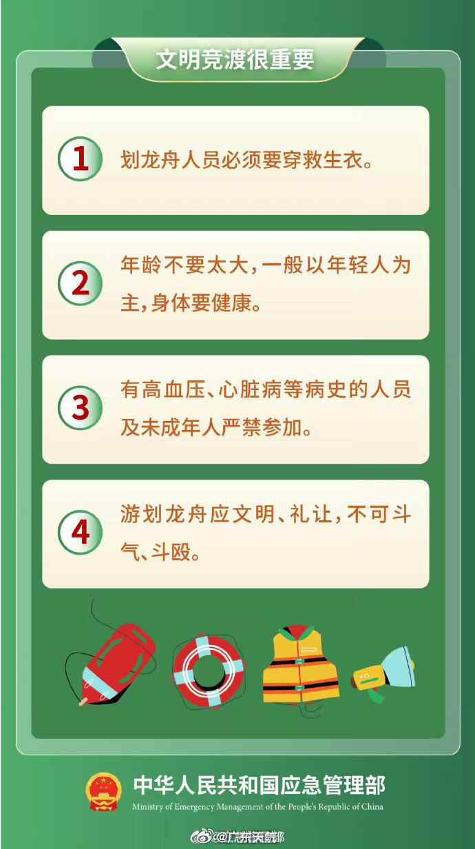 端午节进入倒计时,各地龙舟赛频繁,群众热情高涨。然而,训练和比赛过程中易发生撞船、倾覆、人员落水等险情,江上赛龙舟危险性高,岸上观赛也需注意安全。请务必收藏并转发这份龙舟竞赛安全提示,确保平安参与↓↓↓