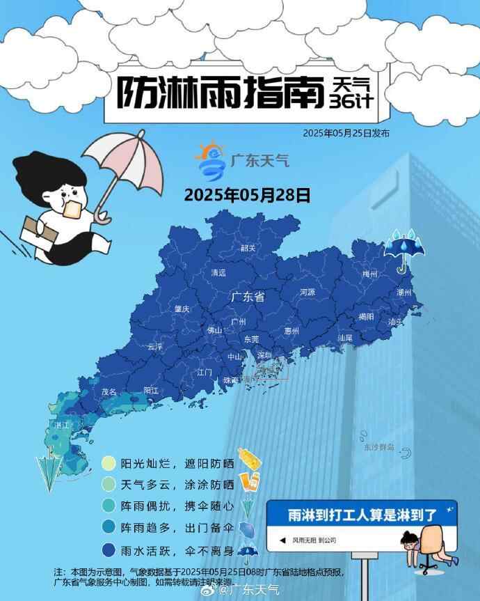 广州方面,今天还是凉快,幸运的小伙伴会被阵雨砸中。本周最高温度不超过30℃,但降雨会有点烦人。