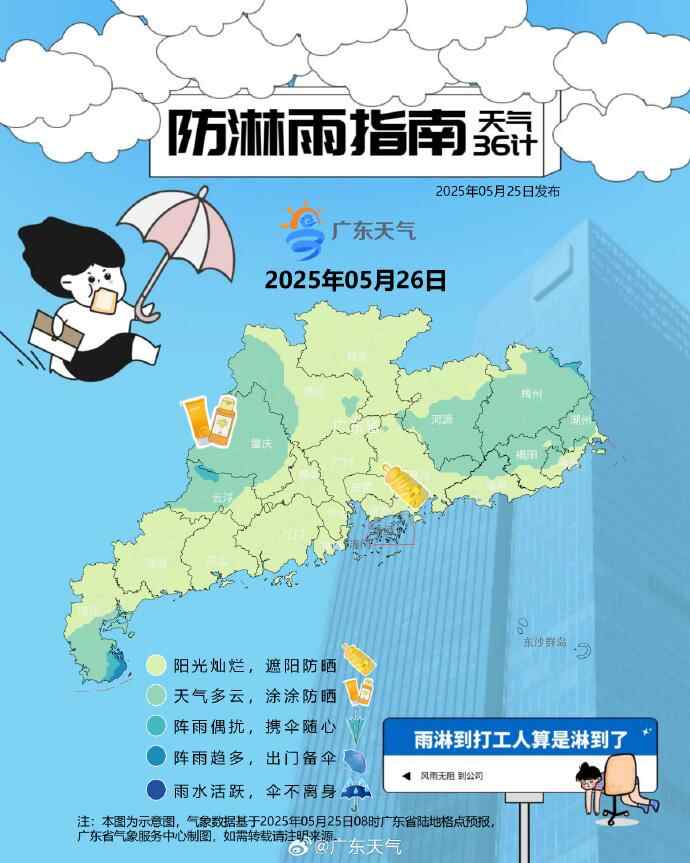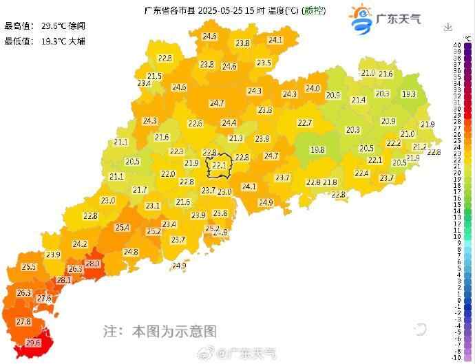 26日,广东省大部多云到阴天,有分散阵雨。最高气温:中北部市县22℃~26℃,南部市县26℃~29℃。