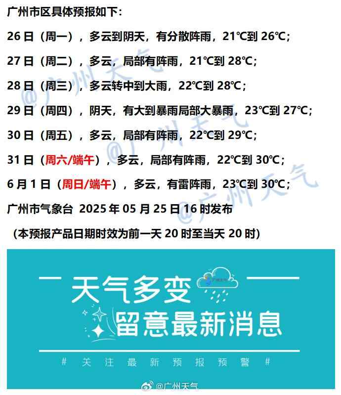 27日,西部市县多云到阴天,有分散阵雨,其余市县多云间阴天,局部有阵雨。最高气温:粤北市县23℃~26℃,其余市县27℃~31℃。