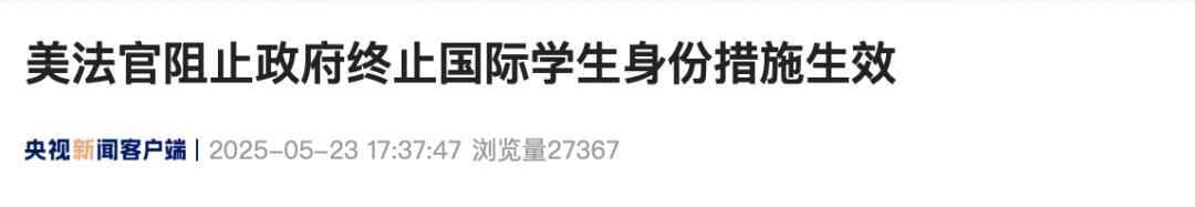 不过,据美国媒体报道,美国加利福尼亚州的联邦法官杰弗里·怀特当天发布禁令,阻止特朗普政府在案件审理期间终止各大学(包括哈佛大学在内)国际学生合法身份的措施生效。在案件审理期间,禁令还禁止特朗普政府以移民身份为由,逮捕或拘留任何在美国之外出生的学生。