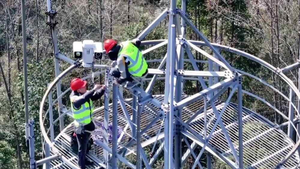 夏季是森林火灾高发期,武夷山市生态环保综合指挥中心的工作人员来到洋庄乡大安村,安装调试高空瞭望云台。这些高空瞭望云台可覆盖半径3公里区域,具备异常温度与烟雾火情AI自动识别功能。
