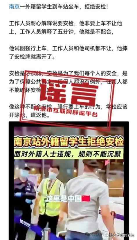 近日,一则“外籍留学生强闯南京火车站安检”的信息在网络传播,称南京火车站一外籍留学生强闯安检,被阻止后怒扔安检提醒牌。