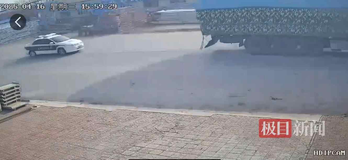 多段监控显示,2025年4月16日14时58分,一辆开着警灯的白色轿车行驶在一辆半挂车前方。记者在地图上检索视频中的商户发现,此处为S302公路,距离康平县二牛所口镇政府700多米。16日15时54分至59分,前述轿车疑似追逐半挂车和别半挂车,两车还并行。16日16时6分,半挂车行驶至十字路口,车尾倾斜,几秒后整车侧翻。