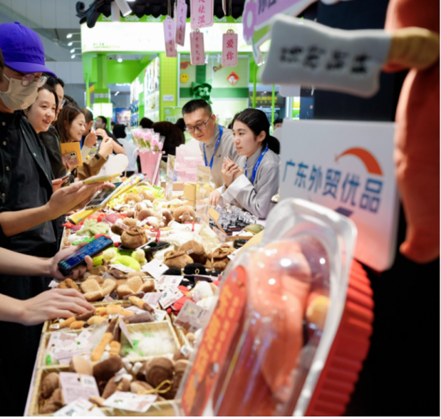 该公司主营塑胶玩具、钥匙扣等促销礼品,其新开发的自主IP毛绒玩具,搭载AI模型,可实现语音互动,在今年的广交会上一经推出,就收获数十万美元订单。